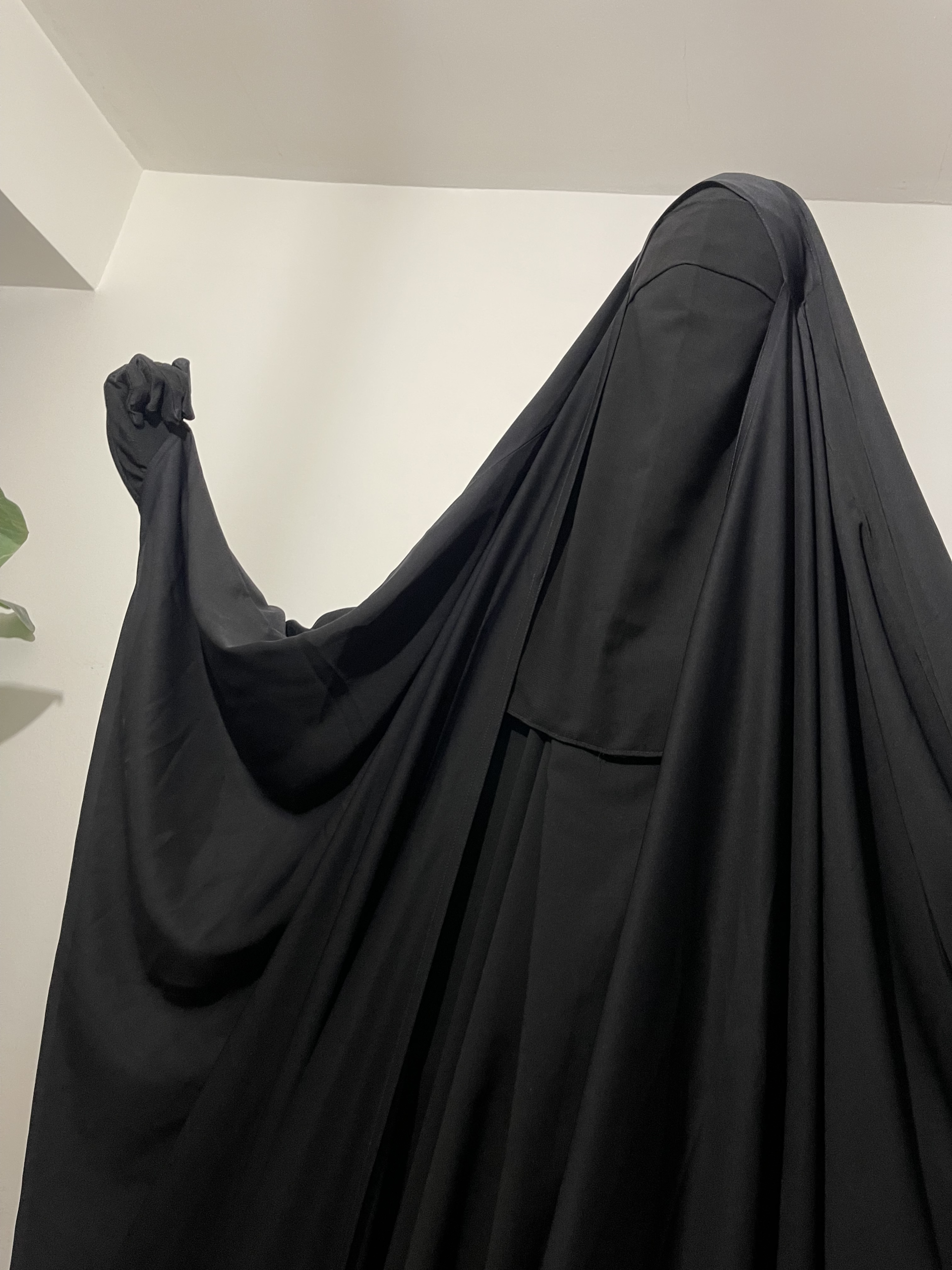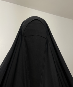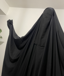 Il descend jusqu’à en dessous de la poitrine respectant ainsi, les obligations d’Allah (Note : La longueur du niqab dépendra de votre morphologie).