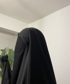 – S’adapte facilement selon la situation : En cas de contrôle ou de besoin ponctuel, le niqab peut se rabattre discrètement et furtivement vers l’arrière, sans qu’il soit nécessaire de l’enlever entièrement.